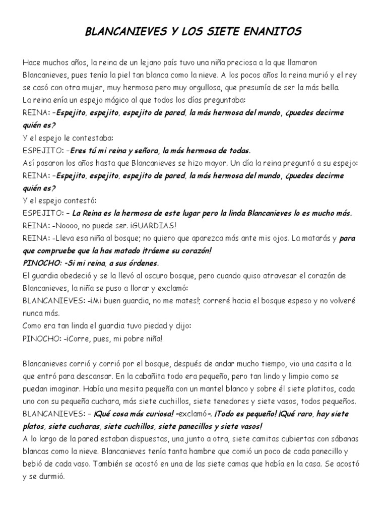 Cuento De Blancanieves Y Los Siete Enanitos - Sugerir como traducción de blancanieves y los siete enanitos copiar