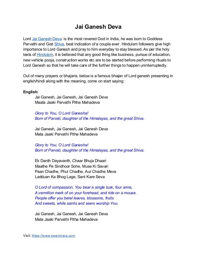 Jai Ganesh Jai Ganesh Deva Lyrics Meaning - Neha maddela submitted the lyrics for this song.