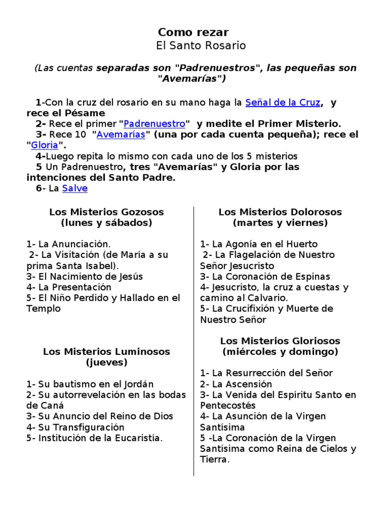 Misterios Del Rosario Viernes - Misterios gozosos (lunes y sábado).